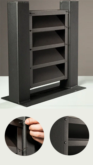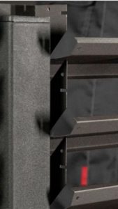 Быстрый монтаж конструкции достигается за счет простой сборки секций. Достаточно с обеих сторон вставить ламель в прорези направляющих и готовые секции закрепить к закладным.