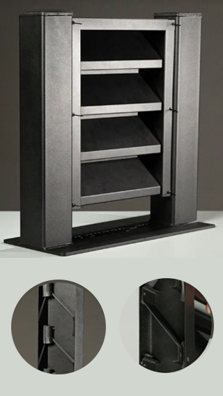 Напоминает базовую модель, но здесь мы добавили фиксаторы. Это позволяет повысить скорость и удобство монтажа. По ходу сборки ламели закрепляются в направляющих фиксаторами.